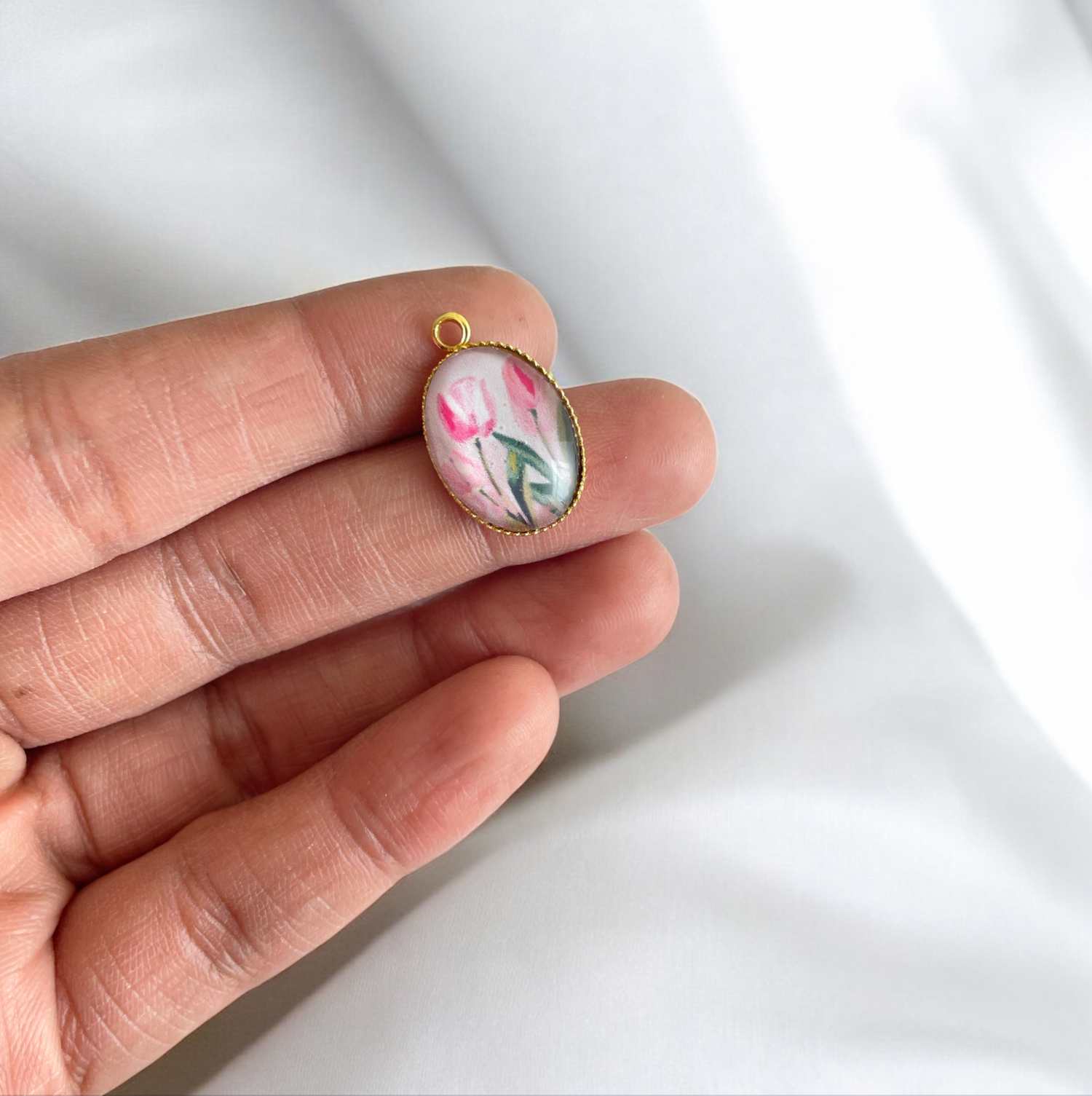 FloraL Resin Earring Charms: Oval Pendants (RU73 - RU81)(4-5 day Dispatch)
