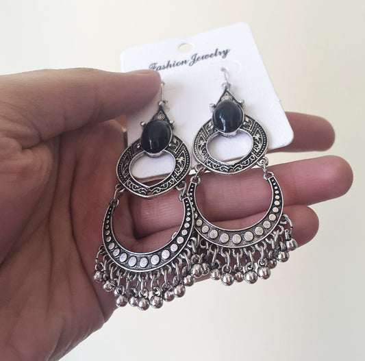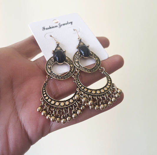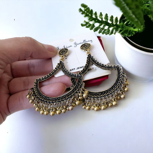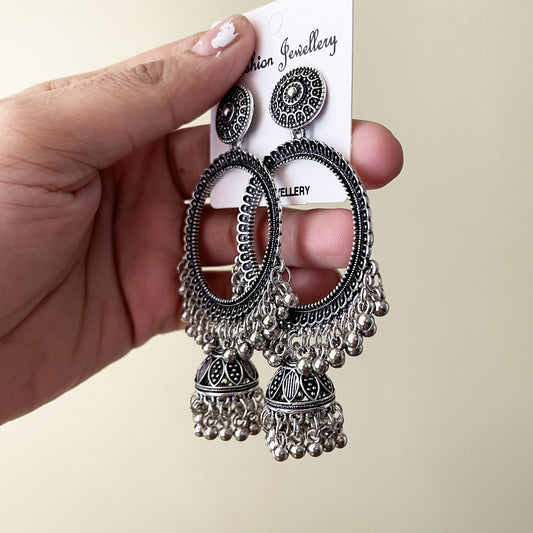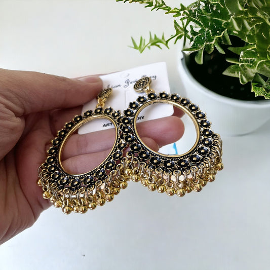 E06 - Golden Oversize Circle Oxidised Jhumka Earring