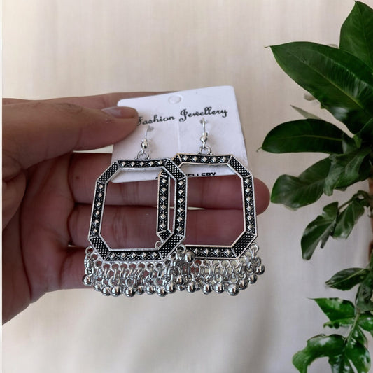 JB73 - Tri Jhumka Golden Circle Oxidised Earring (New Design)