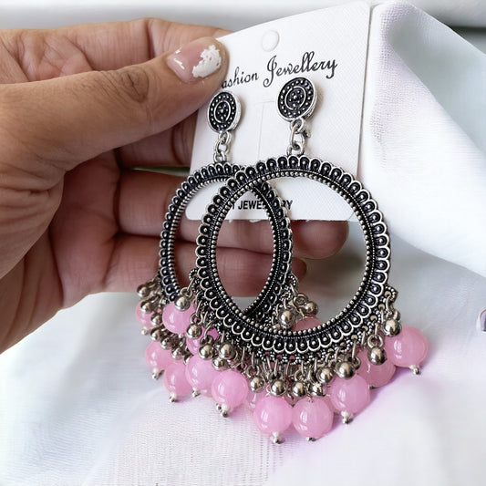 Silver Circle Oxidised Earring (Pink Beads) For Resin Art