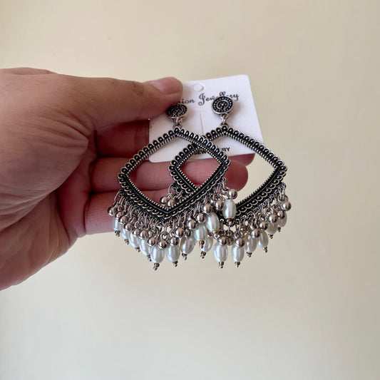 Rhombus Circle Oxidised Earring (Pearl Beads) For Resin Art