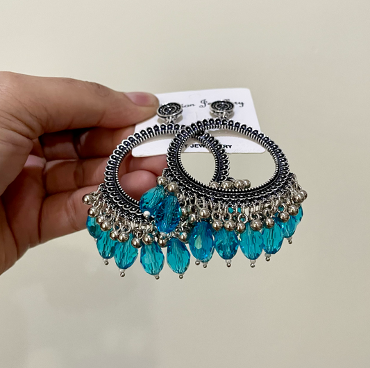 Silver Circle Oxidised Earring (Blue Crystal Beads) For Resin Art