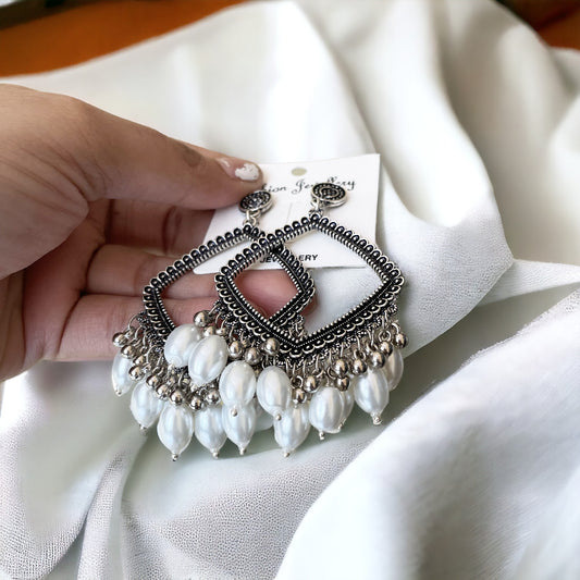 Silver Rhombus Oxidised Earring (Pearl Beads) For Resin Art