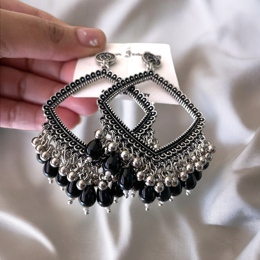 Silver Rhombus Oxidised Earring (Black Beads) For Resin Art