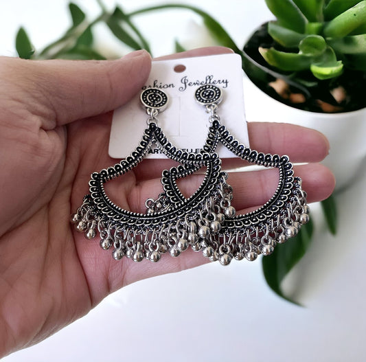 ES06 - Oversize Circle Oxidised Jhumka Earring