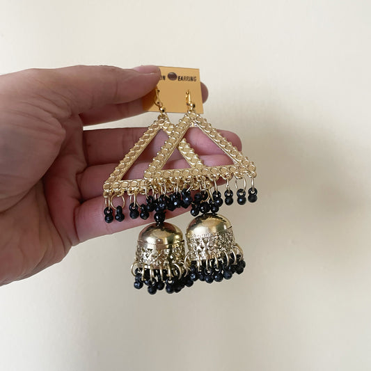 E10 - Gold Oxidised Drop Jhumka Earring Base