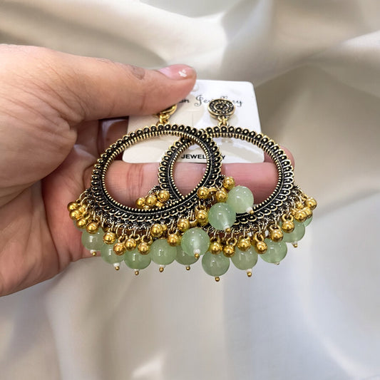 Golden Circle Oxidised Earring (Green Beads) for resin art