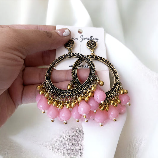 Golden Circle Oxidised Earring (Pink Glass Beads) for Resin Art
