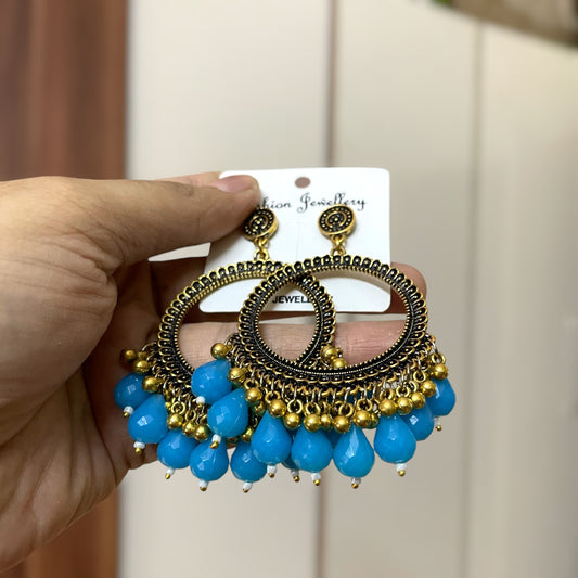 Golden Circle Oxidised Earring (Sky Blue Beads) for resin art