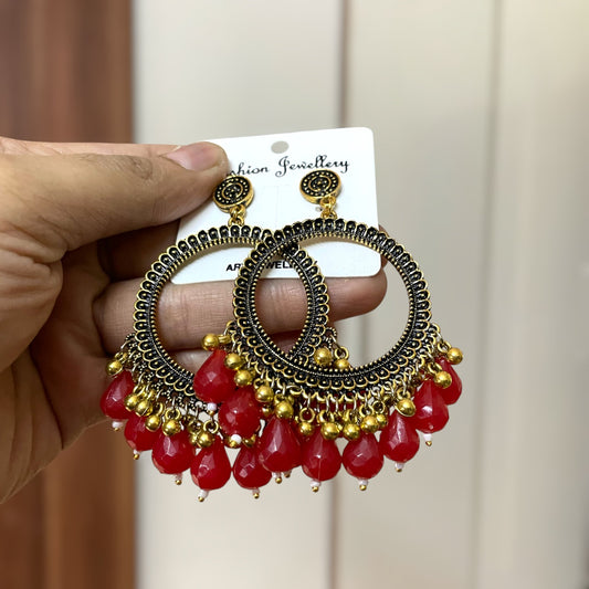 Golden Circle Oxidised Earring (Red Beads) for resin art