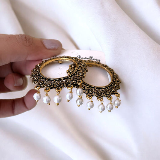 Golden Circle Stud Oxidised Earring (Pearl Beads) For Resin Art