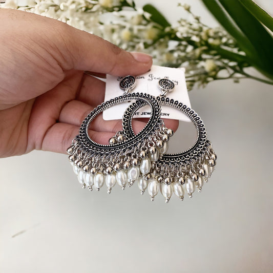 JB01 - Silver Circle Oxidised Earring (Pearl Beads) for Resin Art