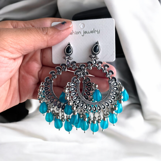 JB02 - Silver Peacock Motif Oxidised Earring (Blue Beads) For Resin Art - Best Quality
