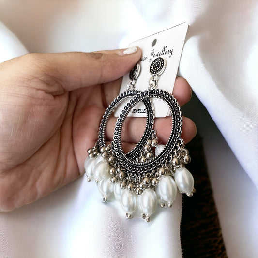 JB08 - Silver Circle Oxidised Earring (Pearl Beads)