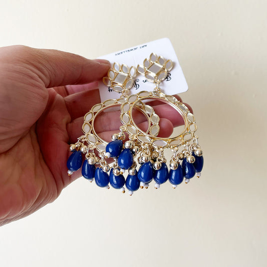 JB49 - Blue Beads Light Gold Mirror Earring - Best Quality