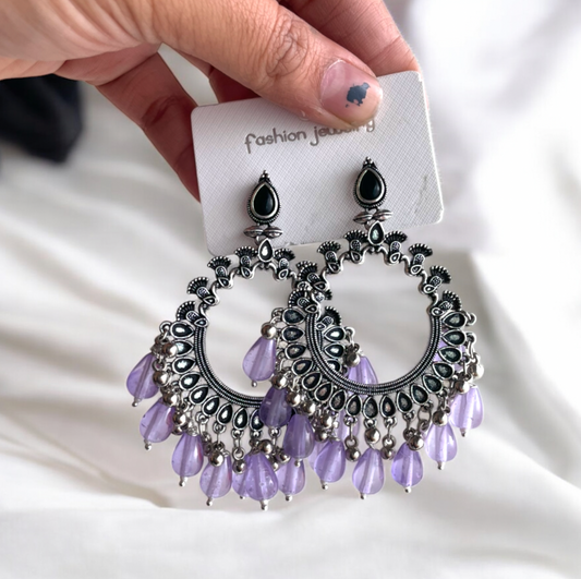 JB43 - Silver Peacock Motif Oxidised Earring (Lilac Beads) For Resin Art