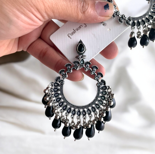 JB42 - Silver Peacock Motif Oxidised Earring (Black Beads) For Resin Art - Best Quality