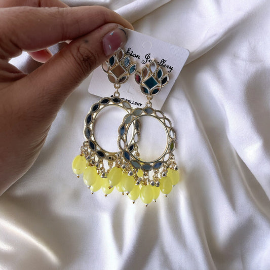 JB55 - Gold Glass Beads Light Gold Mirror Earring - Best Quality