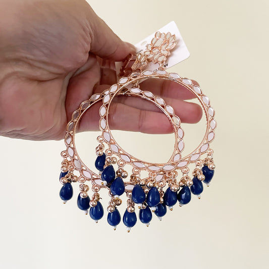 Blue Acrylic Beads Rose Gold Mirror Earring