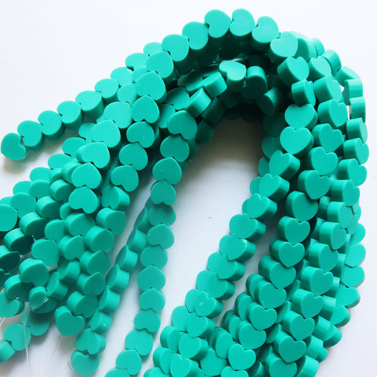 Teal - 10mm Heart Polymer Clay Beads