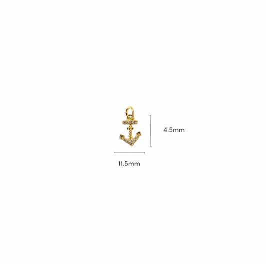 BTF36 - Multi Zircon Anchor 18k Gold Plated Brass Pendant (Anti Tarnish) (1pc)