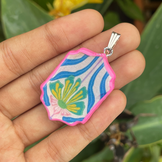 Abstract Floral Pattern Motif Shaped - Cold Porcelain Charms Pendant (With Bail)