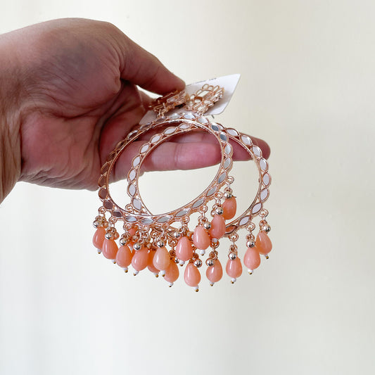 Pearl Golden Jhumka With Peach Beads Earring Bezels For Resin Art - Premium Finish