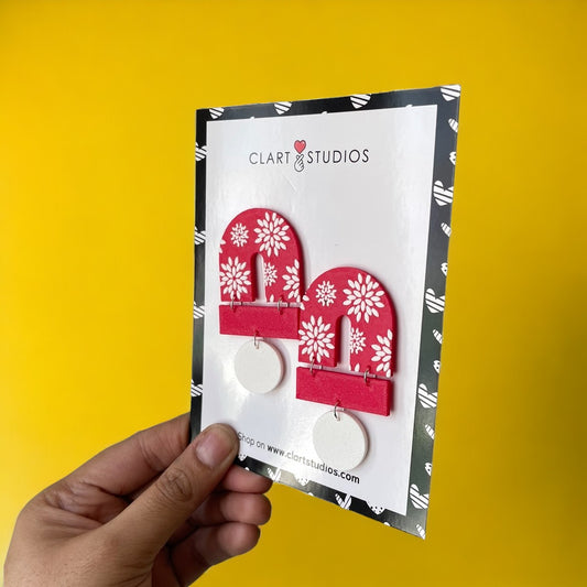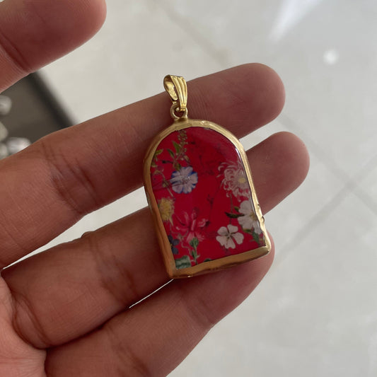 Red Floral Mess Pillar Shaped - Cold Porcelain Charms Pendant (With Bail)