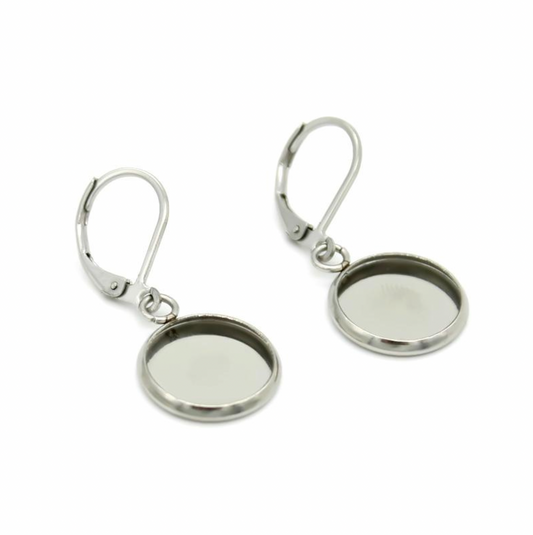 DY08 - (Pack of 2 pair) Circle Anti Tarnish Stainless Steel Earring Base (Silver)