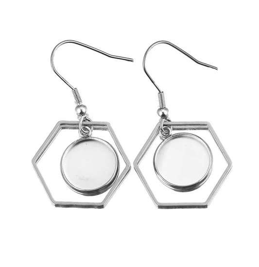 DY04 - (Pack of 2 pair) Hexagon Anti Tarnish Stainless Steel Earring Base ( Silver)