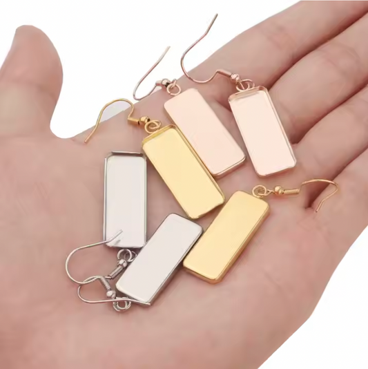 DY05 - (Pack of 2 pair) Rectangle Anti Tarnish Stainless Steel Earring Base ( Gold Plated)