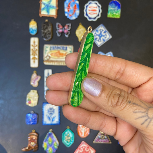 CN 17 - LeafTextured Dangle Hand Painted - Handmade Clay Charm