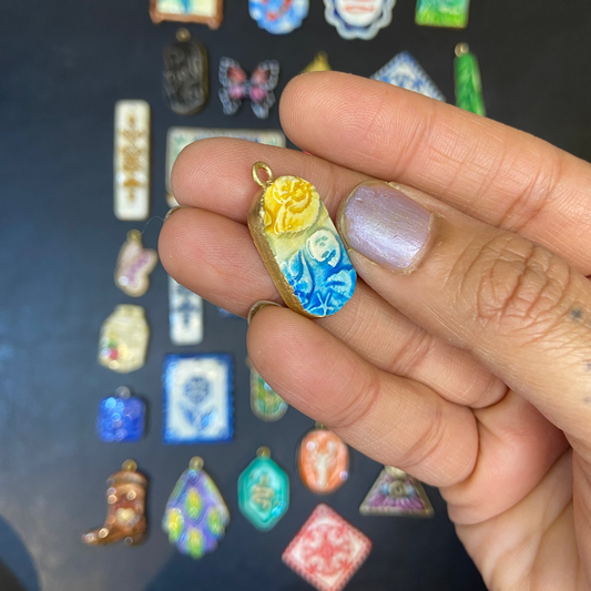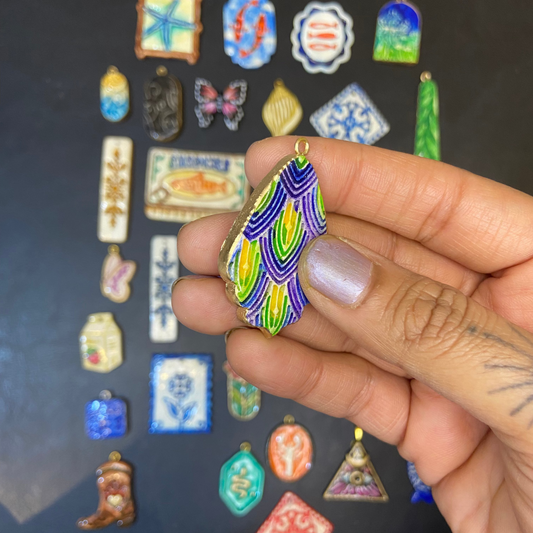 CN 34 - Stainglass Floral Textured Hand Painted - Handmade Clay Charm