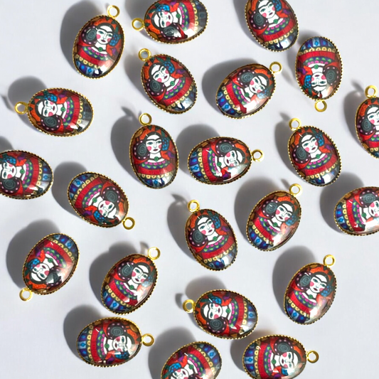 GN03 - Pack of 2pcs - Cute Frida - Glass Pendants with Metal Base