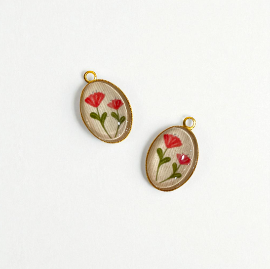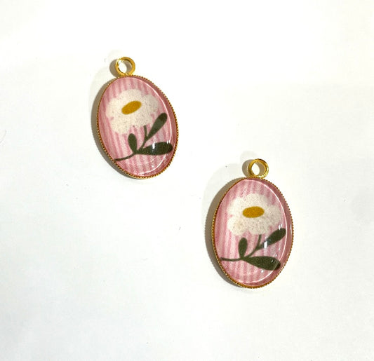 GN026 - Pack of 2pcs - Vintage Flower Boho - Glass Pendants with Metal Base