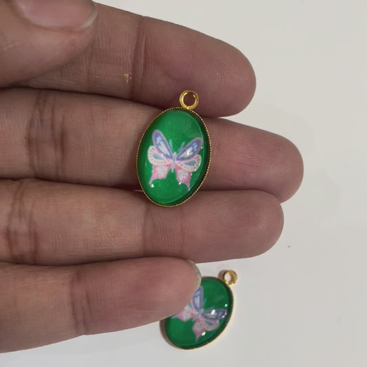 GN01 - Pack of 2pcs - Green Butterfly - Glass Pendants with Metal Base