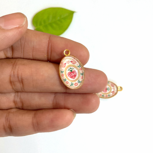 GN09 - Pack of 2pcs - Love - Glass Pendants with Metal Base