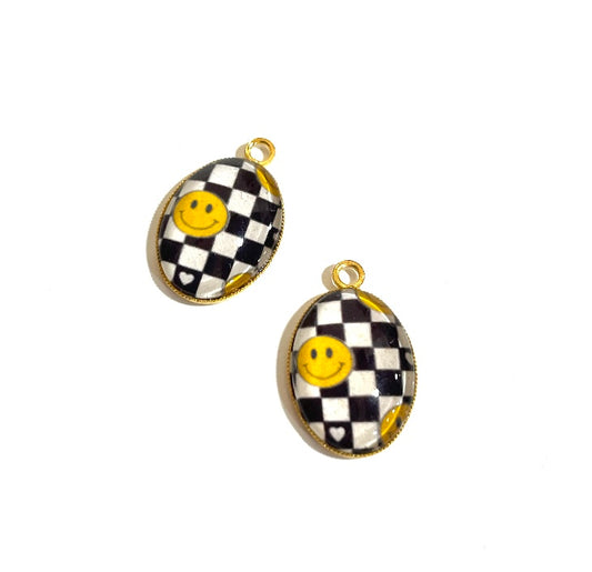 GN032 - Pack of 2pcs - Classic Smiley - Glass Pendants with Metal Base