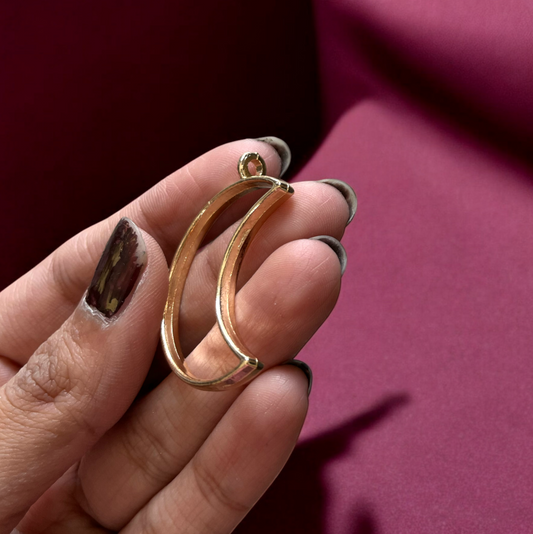 RB31 - Patterned Semi Circle Connector Hollow Pendant / Bezel / Charm