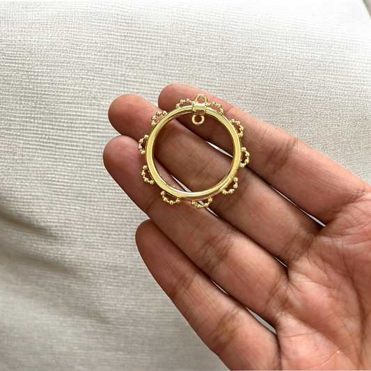 RB34 - Circle Bezel With Dangle Hollow Pendant / Bezel / Charm