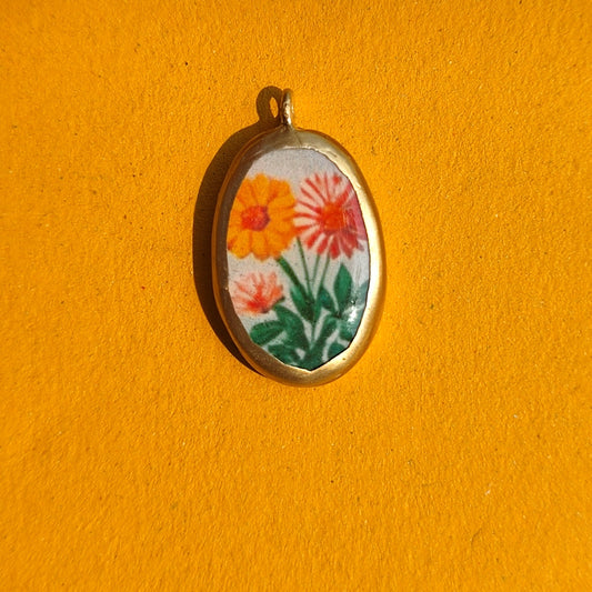 PO10- Orange Yellow Flowers - Cold Porcelain Charms Pendant (Dispatch in 7-9 Days)