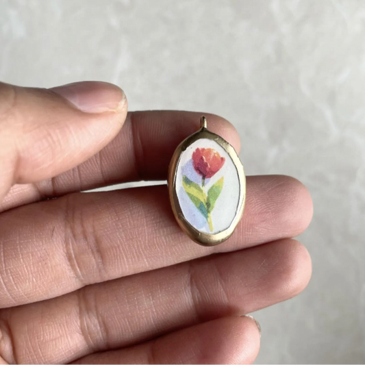 PO12- Painting Inspried Flower - Cold Porcelain Charms Pendant (Dispatch in 7-9 Days)