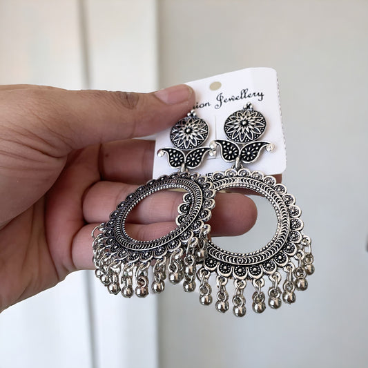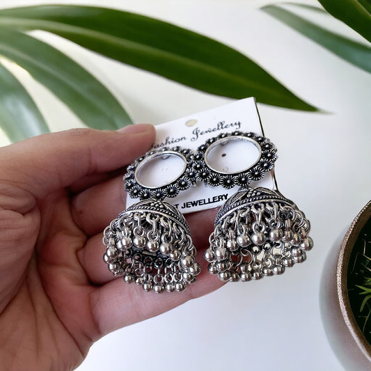 ES06 - Oversize Circle Oxidised Jhumka Earring