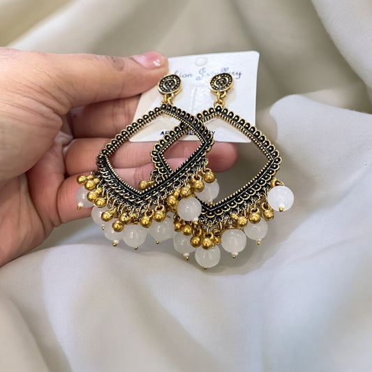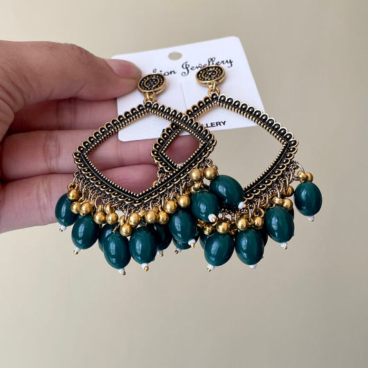 Golden Rhombus Oxidised Earring (Green Beads) For Resin Art