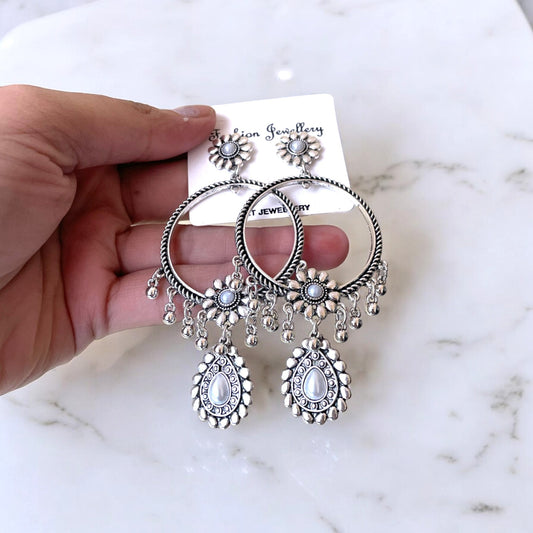 Tri Jhumka Silver Circle Oxidised Earring (XL) For Resin Art