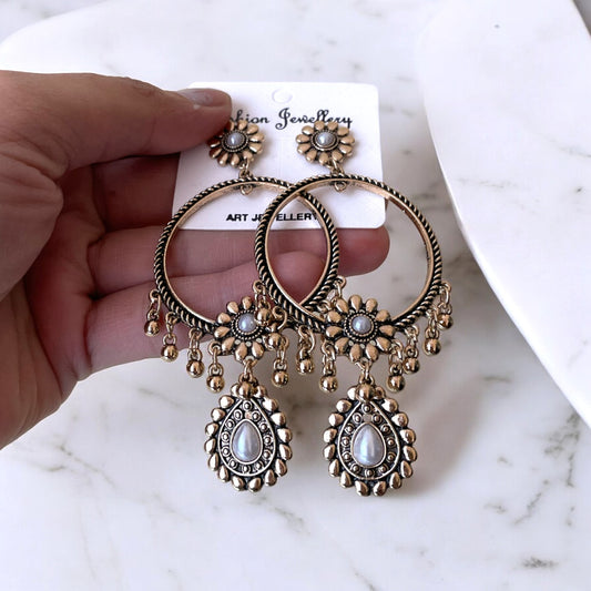 Rhombus Circle Oxidised Earring With Hanging