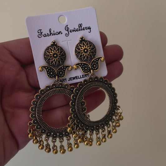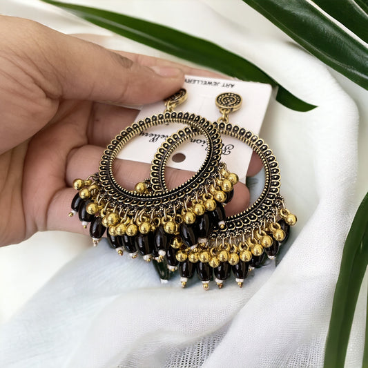 Golden Circle Oxidised Earring (Black Beads) For Resin Art