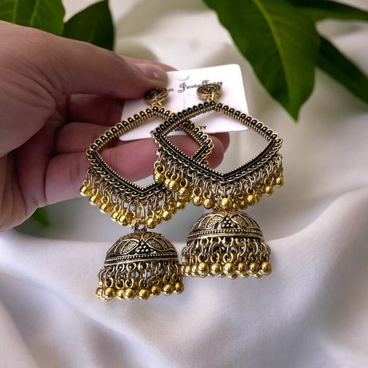 E12 - Gold Oxidised Jhumka Earring Base (Peacock)