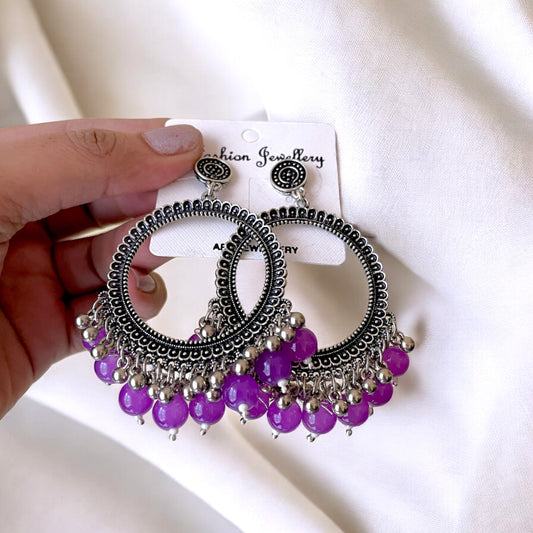 Silver Circle Oxidised Earring (Purple Beads) For Resin Art