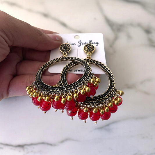 Golden Circle Oxidised Earring (Red Beads) For Resin Art